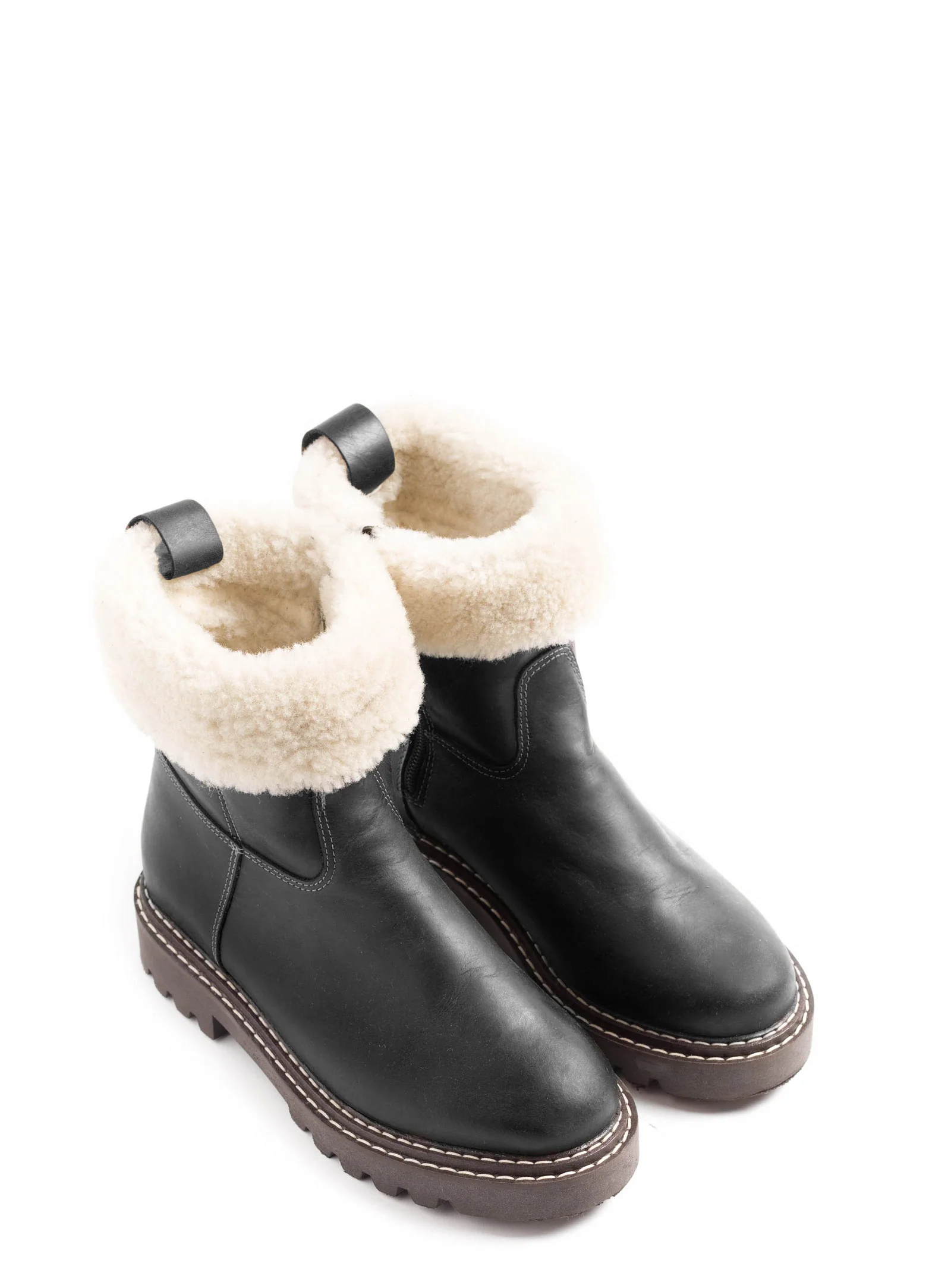 The SUREN boot merges rugged function with elevated craftsmanship. Crafted from waterproof full-grain leather and fully lined in natural wool, it’s built to handle harsh winters with grace. The plush sheepskin collar delivers soft insulation and a cozy alpine finish, while the robust lug sole is detailed with a distinctive double welt stitch—blending durability with artisanal flair. Equal parts heritage and modern edge, SUREN is made for the woman who embraces winter in style.